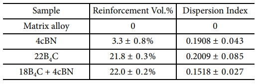 Table 2 Reinforcement volume ratio and dispersion index for fabricated composites |