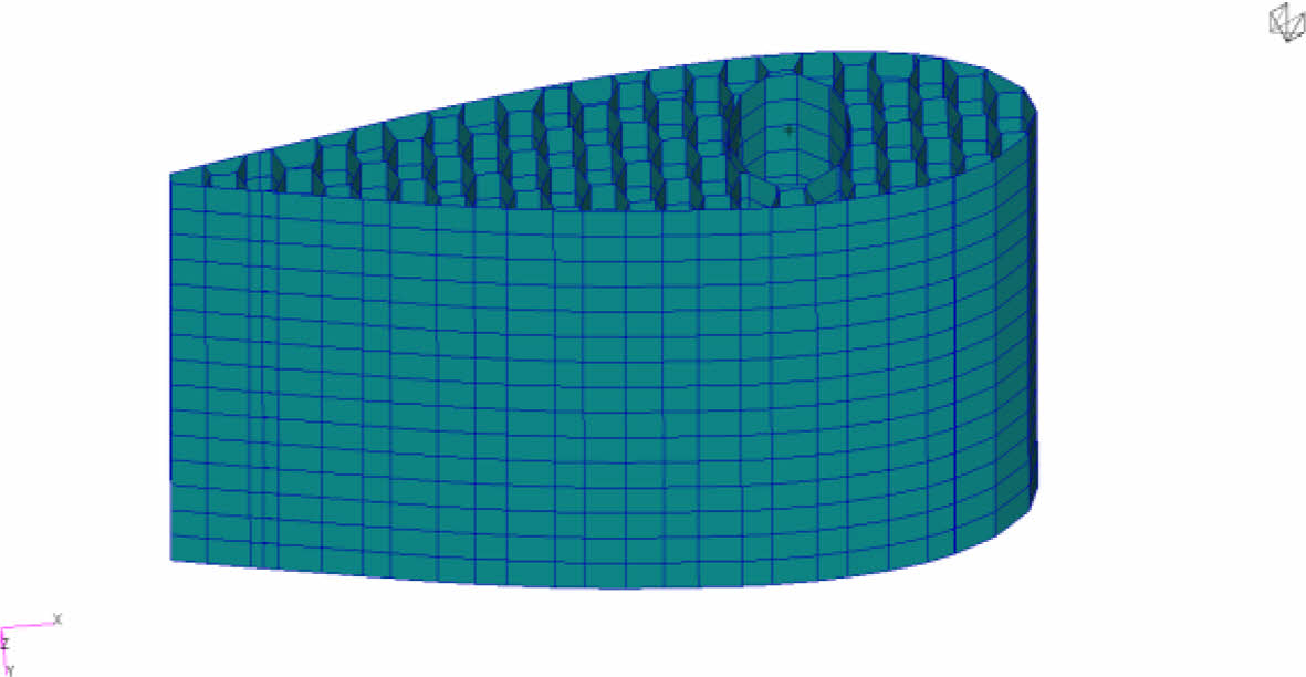 Fig. 7 3D printed rudder FE model with hexagonal topology shape |