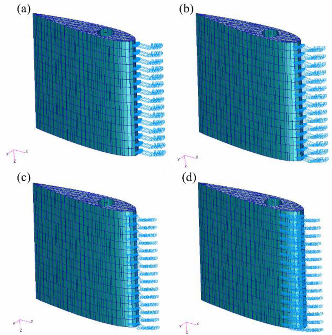 Fig. 11 Load conditions (a) 0° (b) 10° (c) 20° (d) 30° |
