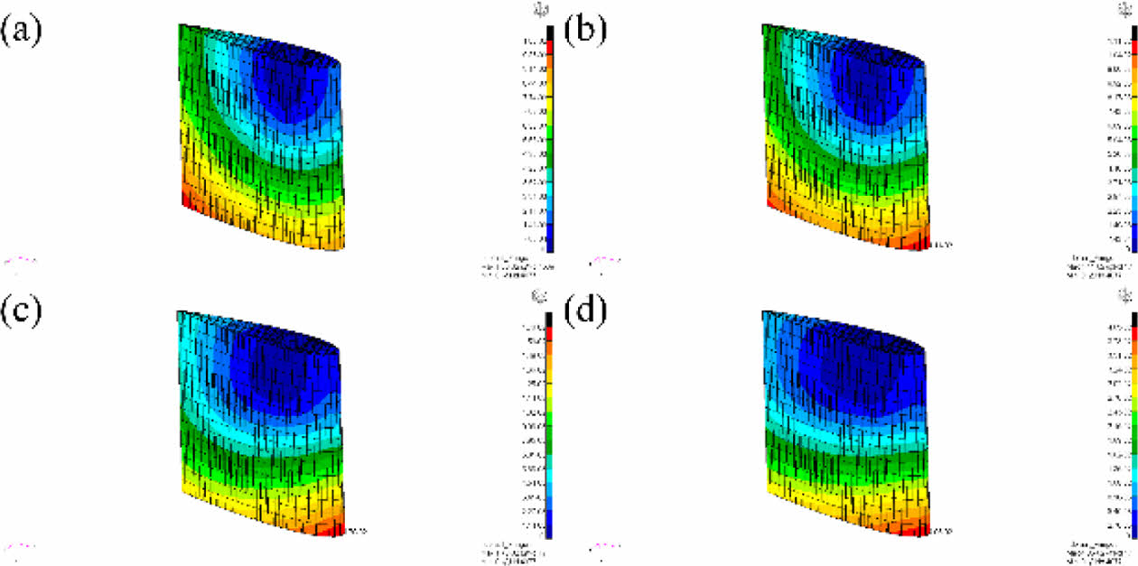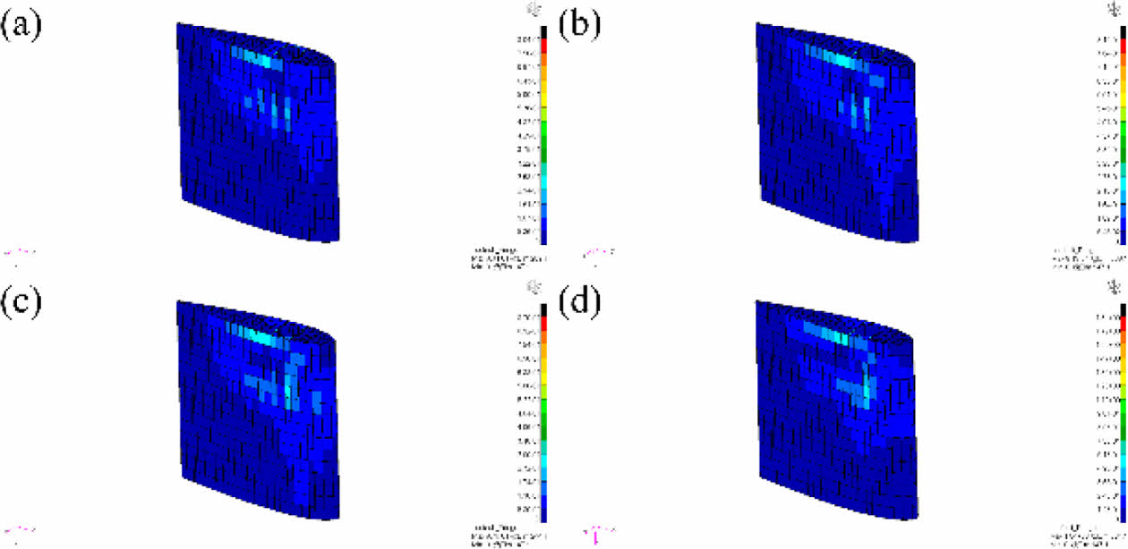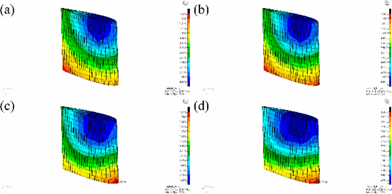 Fig. 20 Deformation results of 3D printed rudder with hexagonal topology shape: (a) 0° (b) 10° (c) 20° (d) 30° |