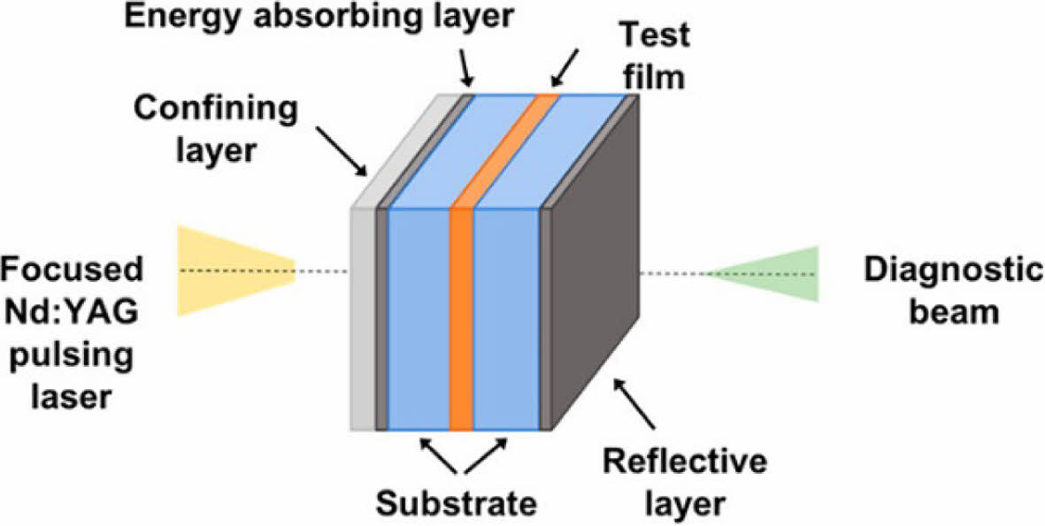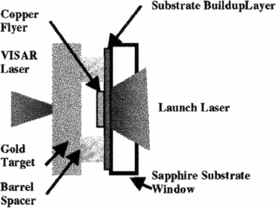 하지만 훨씬 더 작은 크기의 시료를 실험하기 위해서 다른 기술의 필요성이 대두되었고, Fig. 6와 같은 미세한 박막 발사체를 생성하는 레이저 구동 기술이 개발되었다[18]. 변형률과 압력이 매우 높은 충격파를 발생시켰지만, 재현성이 다소 떨어지는 점이 존재하였다[19].