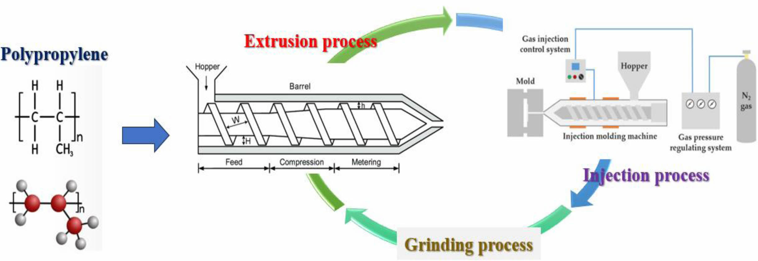 Fig. 3 Schematic diagram of the manufacturing method of PP resin recycling test specimens |