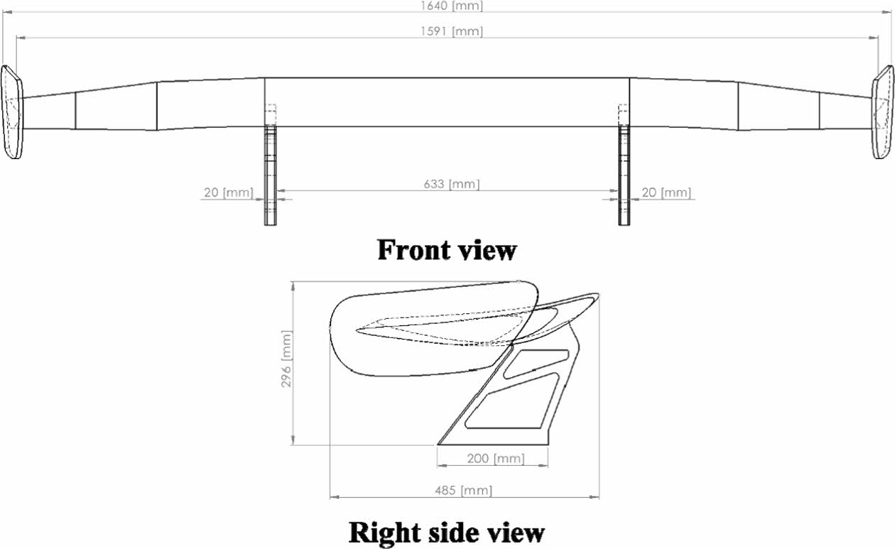 Fig. 1 Dimension of CFRP Rear spoiler |
