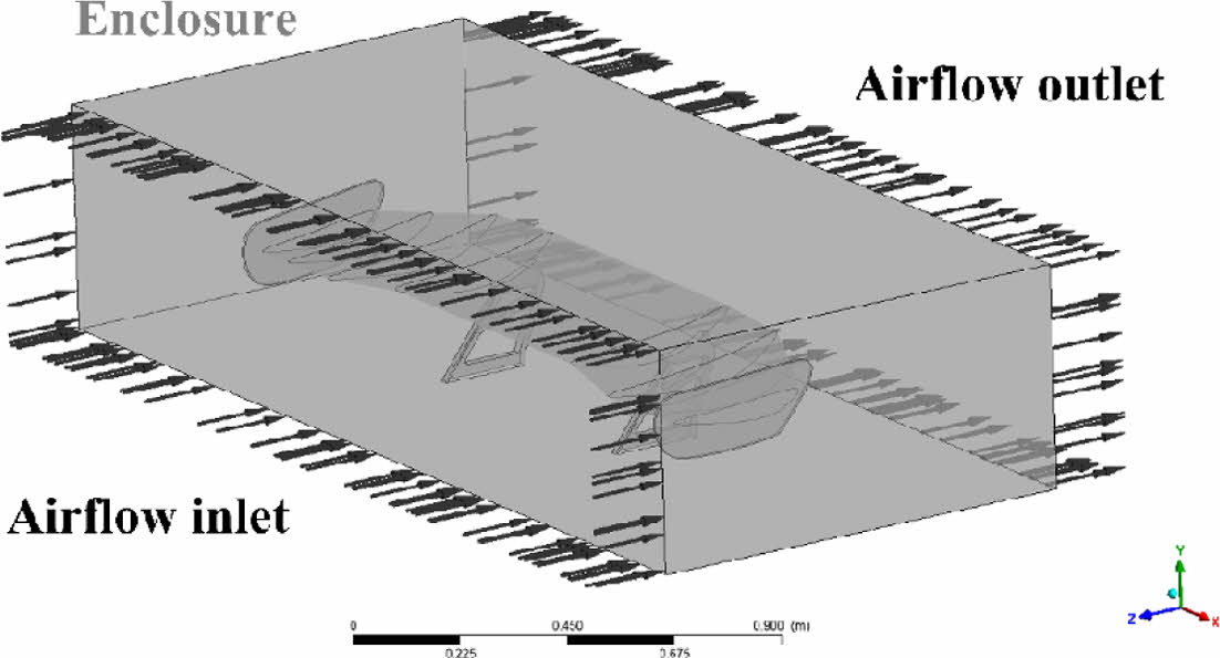 Fig. 4 Enclosure airflow for analyzing CFRP rear spoiler |
