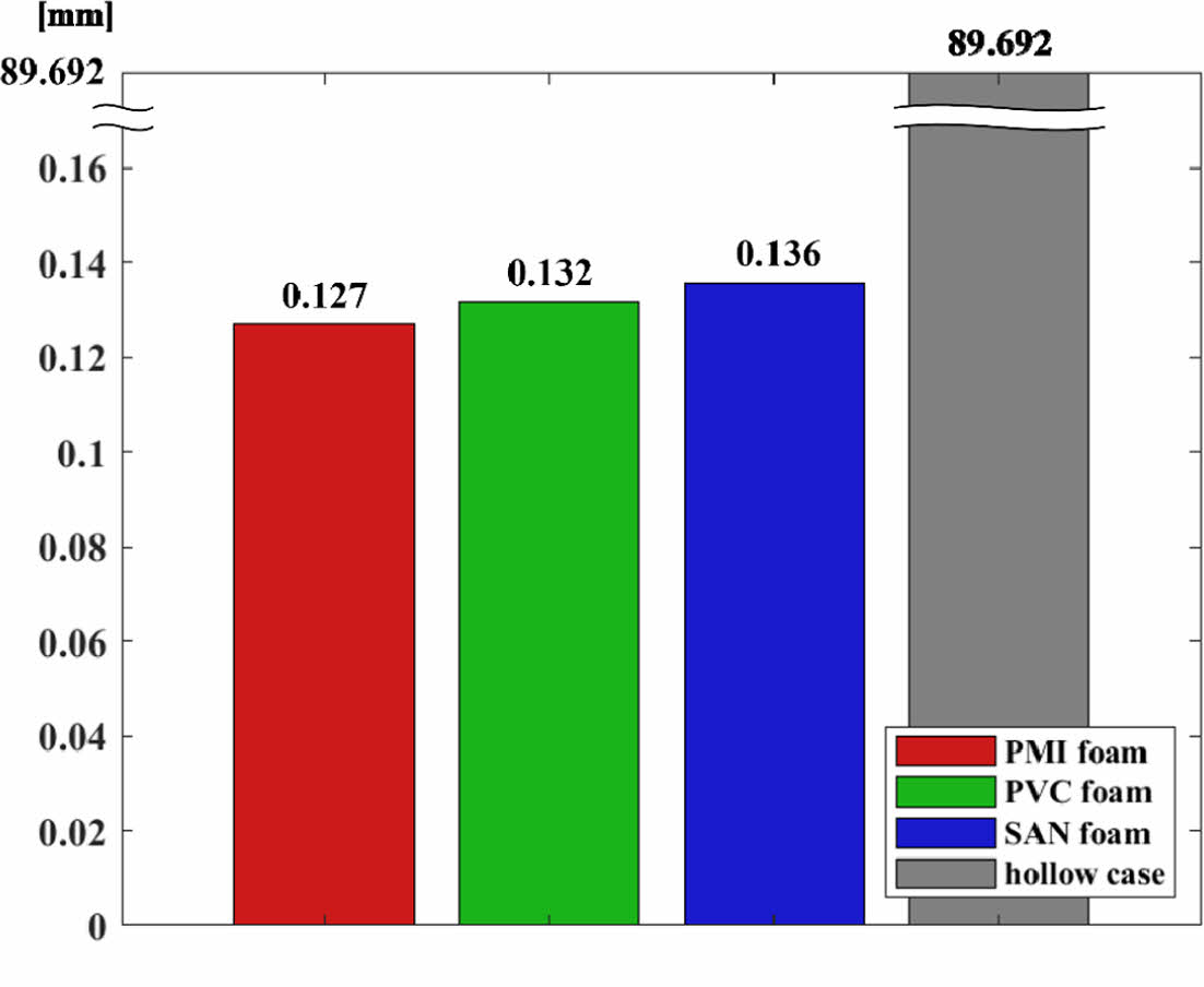 Fig. 14 Bar graph of maximum deformation results by foam core type for the CFRP rear spoiler |