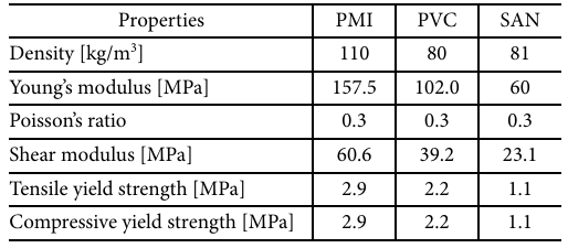 2.3 CFRP 리어 스포일러의 내부 폼 코어 물성