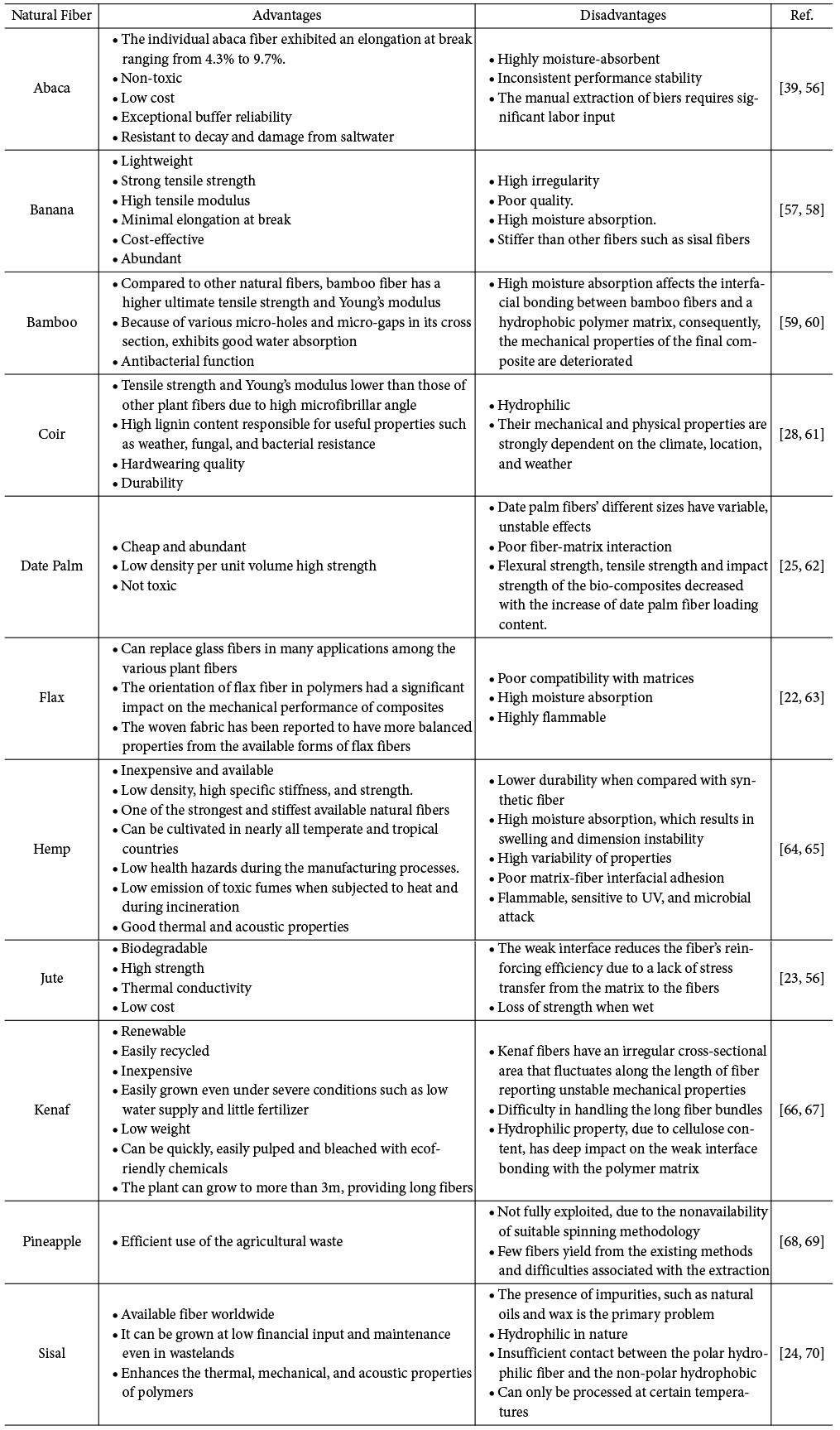 Fig. 1 General plant fibers used in the automotive biocomposites [22-32] |