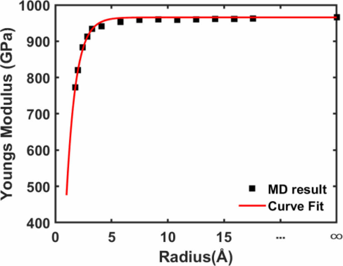 Fig. 6 Least square approximation of the BNNT radius vs Young’s modulus relationship |