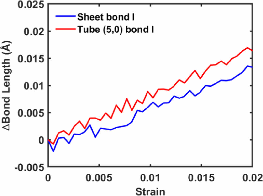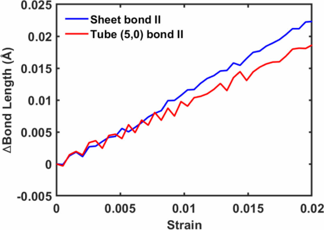 Fig. 8 Difference of elongated bond I length between BNNT (5,0) and BNNS during direct piezoelectric simulation |