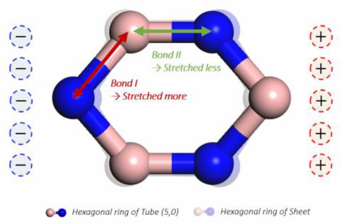 Fig. 10 Schematic diagram of polarization change due to curvature structure through the bond length analysis |