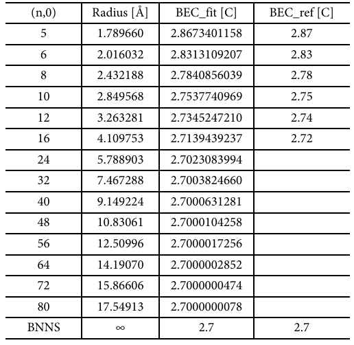 Table 1 Chiral vector, Radius, curve fitted Born effective charge, reference Born effective charge for considered model |