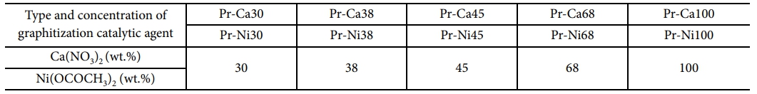 Table 1 Type and concentration of graphitization catalytic agents used in this work |