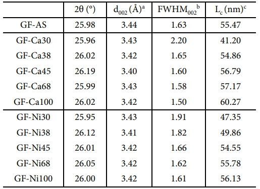 Table 2 Structural parameters of PAN-based graphitized GF-Ca and GF-Ni series |