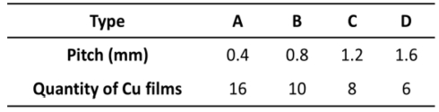 각 Cu film 최적 배치 조합은 Cu film 배치 수량이 많아질수록 배치간격이 조밀한 Type 위주로 형성되었으며, 수량이 적을수록 단조로운 구성의 조합이 형성되었다. 이는 Cu film의 수량 제한이 제약 조건으로 강하게 작용한 결과에 의한 것으로 사료된다.