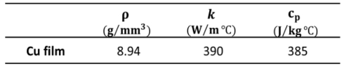 Cu film의 경우 열적 등방성을 만족하므로 Table 4와 같은 열적 특성이 적용되었다[29].