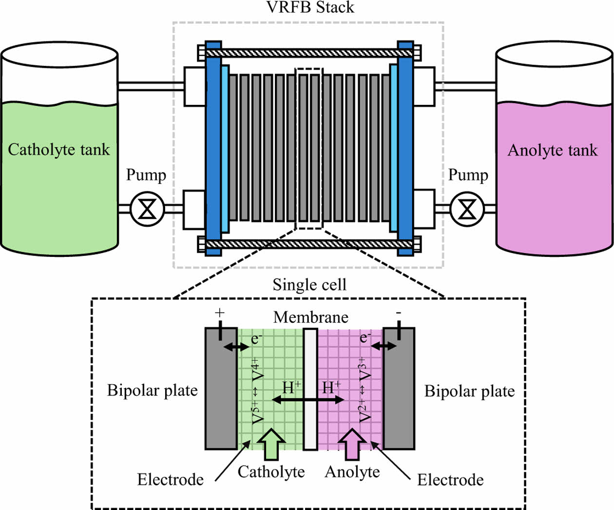 Fig. 1 Schematic drawing of VRFB stack |