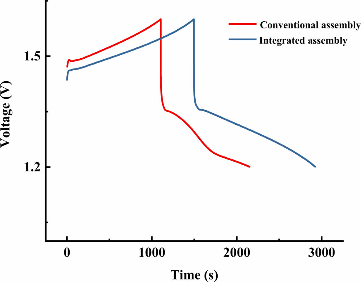 Fig. 8 Charge/discharge test result of conventional and integrated assembly |