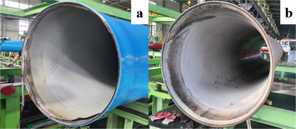 Fig. 6 Pipe expansion test: (a) mechanical pretreatment and (b) chemical pretreatment |