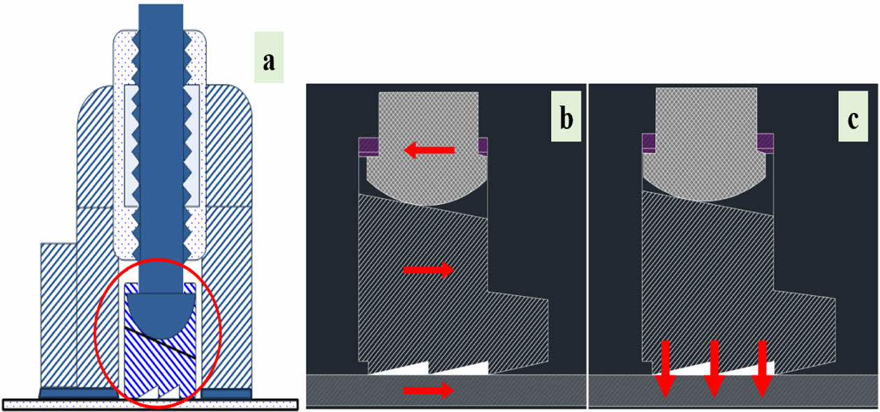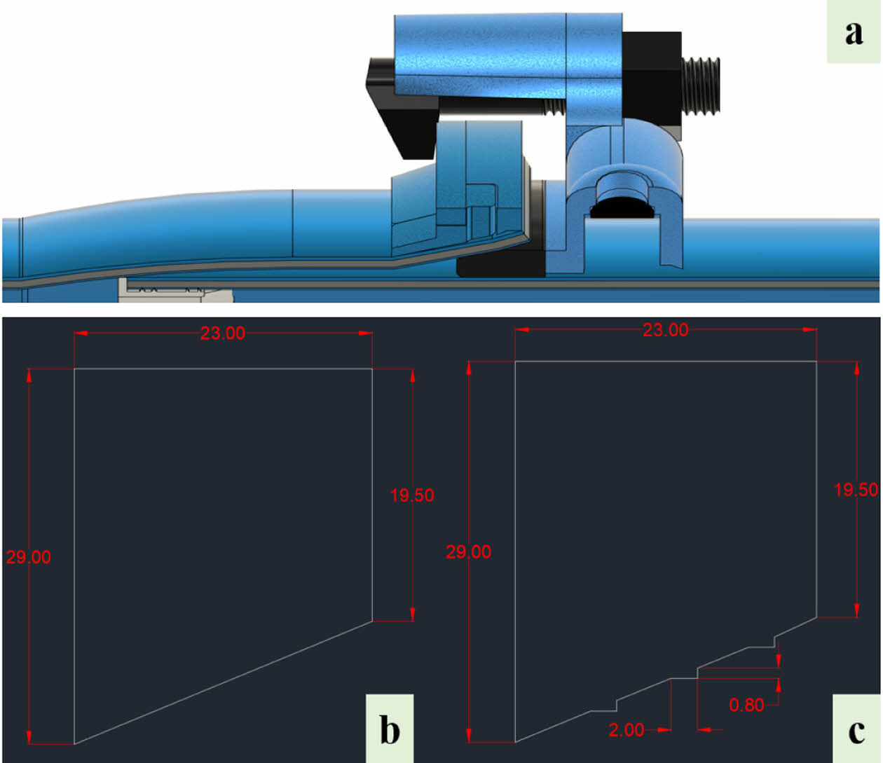 신규 스파이크의 형상은 Fig. 11(a)와 같다. 스파이크 쐐기 날의 방향을 관이 이탈되는 반대 방향으로 설계하여 스파이크 볼트와 스파이크가 접촉되는 면에 경사면을 형성하도록 개발하였다. 이는 수도관의 이탈 시 스파이크의 이동 및 압박의 효과가 존재하여 코팅층 손상을 감소시킬 수 있는 효과가 존재한다. 더하여 스파이크 볼트의 압륜의 내·외측 부위에 너트를 추가하여 추가적으로 고정하였다.