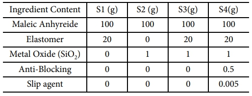 3. 본 연구에서 검토된 그라프트 무수말레산 베이스 개질 폴리에틸렌 성분은 엘라스토머, 금속산화물, 블로킹방지제 및 슬립제를 모두 혼입하였을 때 가장 우수한 성능이 발휘되었으며 금속산화물만 혼입한 시험체 대비 약 25% 개선된 접착력이 확인되었다.