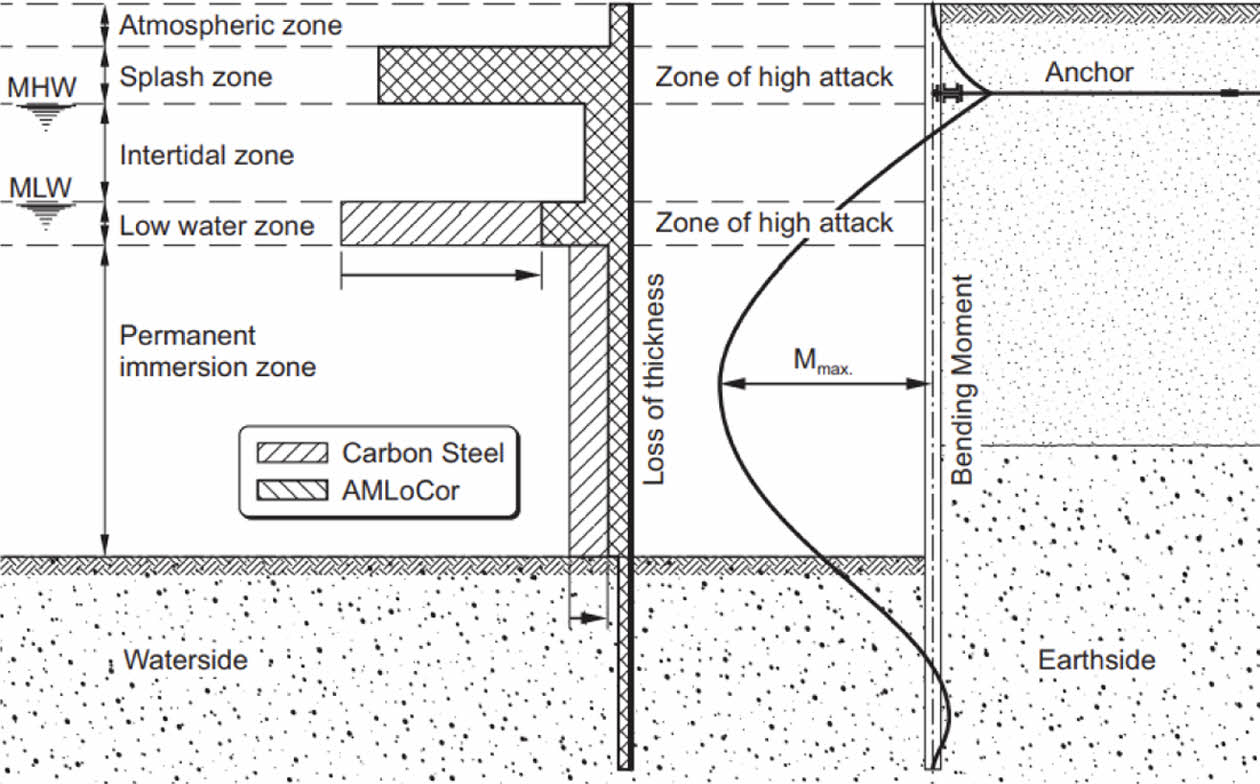 Fig. 2 Typical loss of steel thickness in a marine environment [15] |