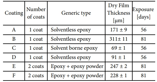 1) 해양 환경 노출 강관에 적용되는 코팅은 강관 구조와의 충분한 계면 결합이 확보되어야 하며, 이는 우수한 화학적 저항성과 부식 방지 성능을 제공하여 강관을 해양 환경으로부터 효과적으로 보호할 수 있었다.