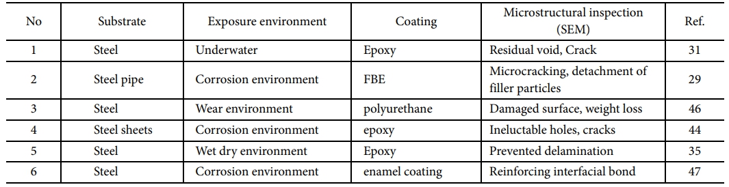 Table 6 Microstructural inspection results according to exposure environments and coating materials |