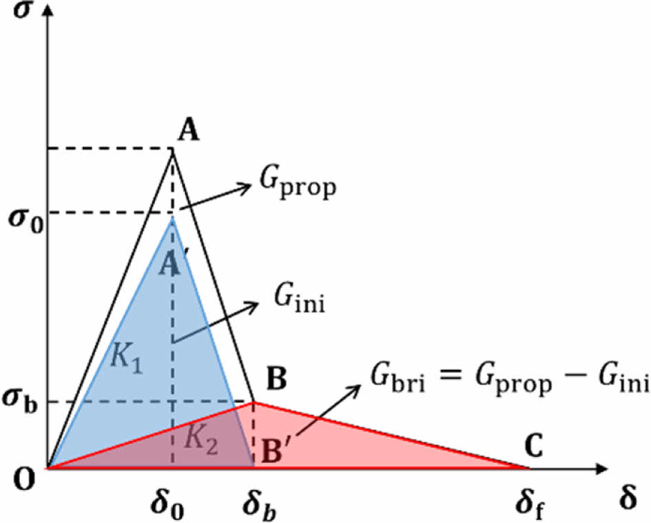 Fig. 4 Tri-linear traction-separation law for CZM[7] |