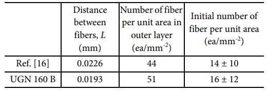 Table 2 Distance between fibers and the number of fiber per unit area in single layer |