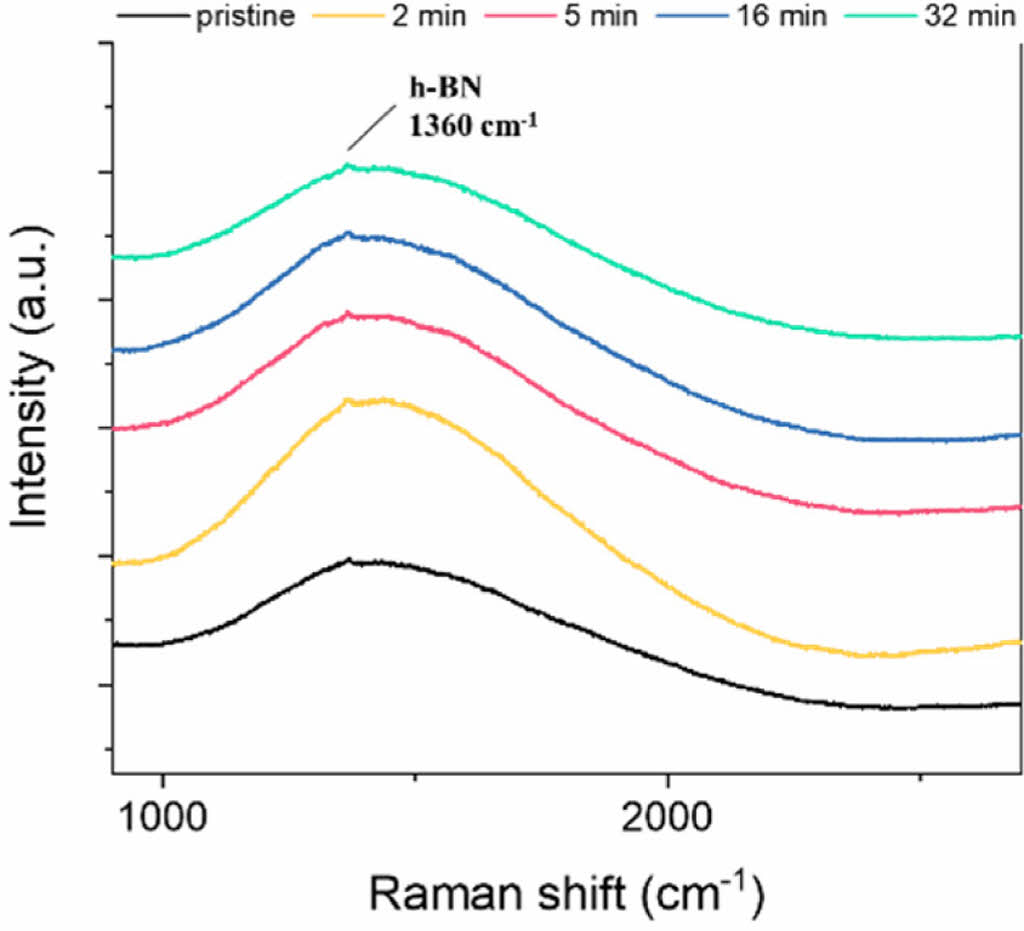 Fig. 3 Raman spectroscopy results of BNNT under different tip sonication conditions |