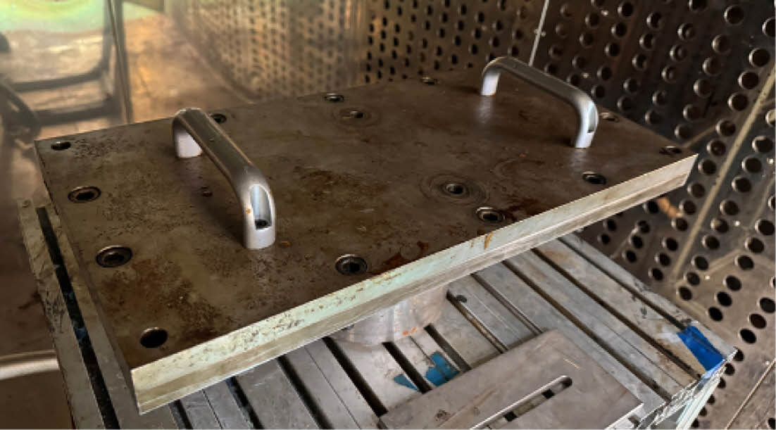 시험에 사용한 수지는 국도화학(주)의 Epoxy KFR-5121과 Hardener KFH-9581LV로서, 1:1 무게비로 교반하여 사용하였다. 패널 제작 시 RTM공정을 사용하였으며, 사용된 Closed Mold는 Fig. 2에 나타나 있다. 시편 종류는 총 5가지로서, 각 시편의 적층 수는 Table 2에 나타나 있다. Table 2에서 보는 바와 같이, CU700은 T700 일방향 섬유만으로 구성되어져 있으며, CUW700은 일방향 섬유와 패브릭이 1:1의 비율로 혼합되어 있고, CW700과 CW300은 패브릭으로만 구성되어져 있다. 각 시편들의 두께는 모두 5.6 mm로서, 동일한 섬유 부피분율을 가지도록 제작되었다.