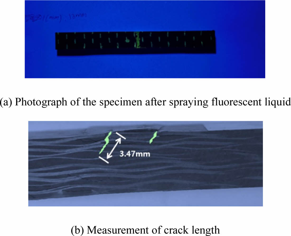 Fig. 9 Measurement of crack length by the penetration test (CU700, 7.3J) |