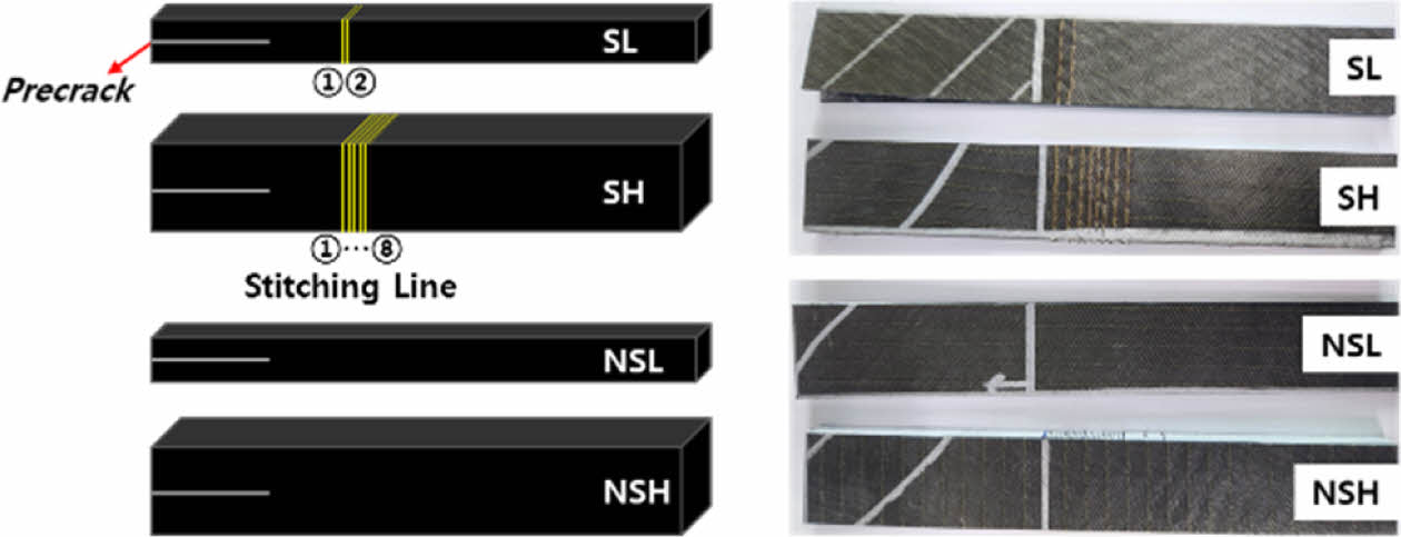 Keywords: 탄소섬유강화 복합재료(Carbon fiber reinforced plastics), 스티칭(Stitching), 박리(Delamination), Mode II test