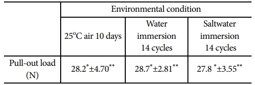 Table 2 Test results of pull-out specimens exposed to environmental conditions |