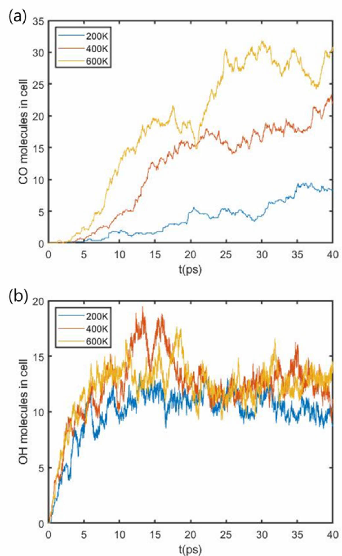 각 AO 충돌 시뮬레이션은 200~920 K의 온도 조건에서 40 K마다 NVT(일정 부피, 온도) 조건에서 총 1000개의 AO가 투입되는 동안 수행되었다. 각 온도 조건에서는 다른 랜덤 시드를 활용한 초기 속도 분포를 가지고 5회의 동일한 해석을 수행하여 평균을 통해 결과를 도출하였다. 초기의 slab 모델에서 원하는 온도까지 50,000 step에 걸쳐 상승시킨 후 이후 50,000 step의 안정화를 시킨 후 해석을 진행하였다.