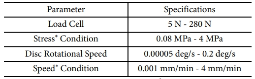 구축된 장비를 이용한 시험 방법은 다음과 같다. 시편을 준비하여 큰 시편은 아랫부분 디스크에 고정시키고 나머지 작은 시편은 L자형 지그 밑부분에 부착시킨다. 두 소재가 접촉 및 하중조건이 만족될 때까지 장비 상단부를 하강시킨다. 하중조건이 조정된 후 센서들의 영점을 지정해주고 속도 조건에 알맞게 디스크를 회전시키며 시험을 진행한다.