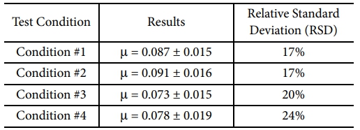 개발된 장비의 경우 상대 표준편차가 2%~11% 정도로 형성되어 재현성이 상대적으로 나은 장비임을 확인하였다.