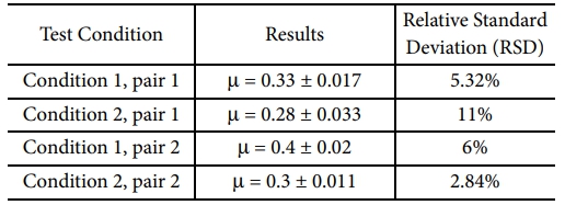 두번째 반복성 비교시험은 비슷한 Pin-on-Disk의 재현성에 대한 연구를 진행한 논문을 참고하여 진행하였다[17]. 이 논문[17]에서 상용장비의 재현성을 정마찰계수의 편차를 이용하여 분석하였다.