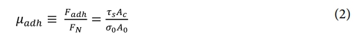 점착마찰은 고무와 노면 간의 접촉을 통해 분자간 인력으로 형성되며 식 (2)와 같이 정의된다.