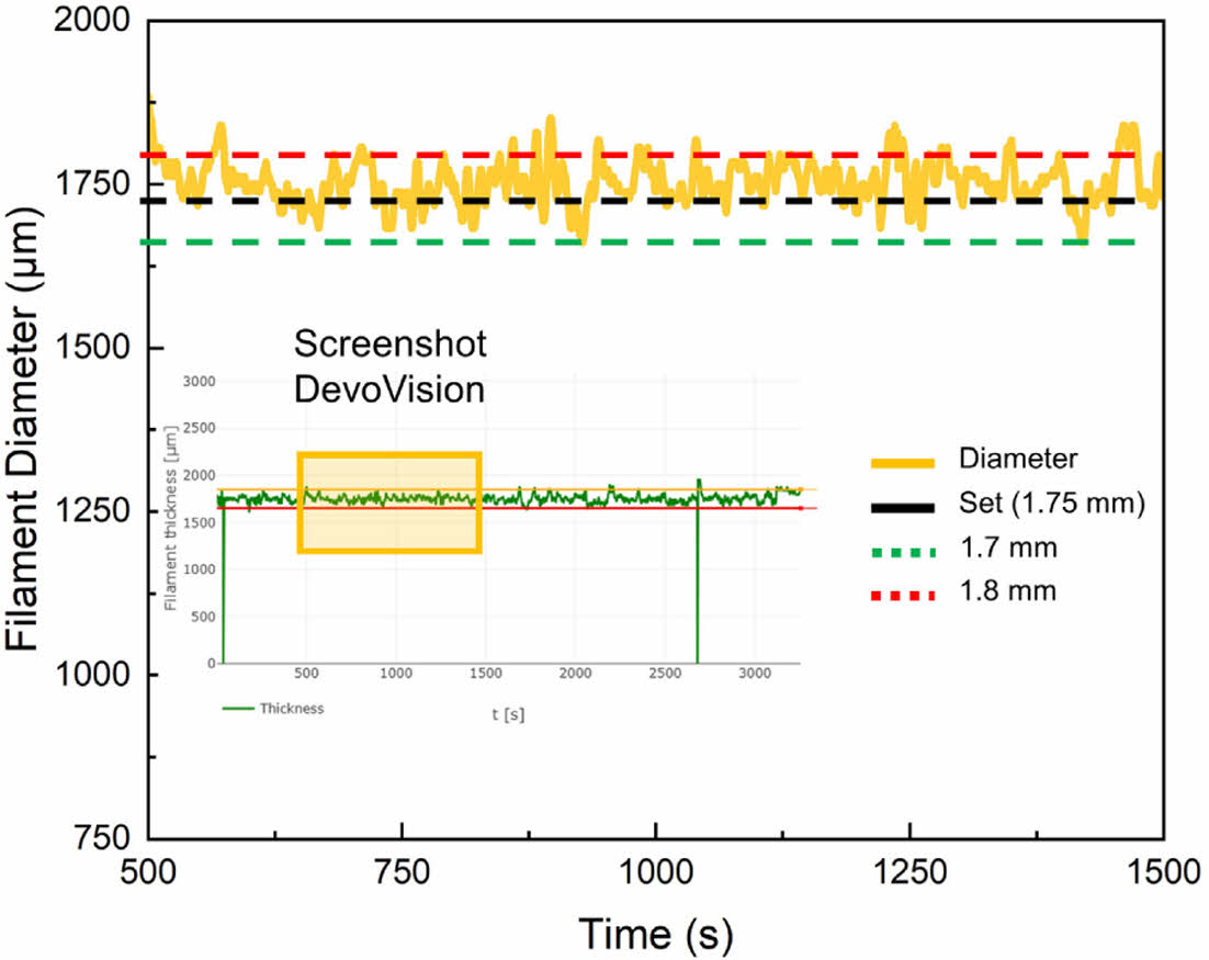 Fig. 2 . Filament diameter measurement of the PETG/15 %rCF sample |