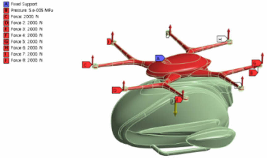 도심항공모빌리티 붐 구조의 최적 설계를 위해 주요 하중인 추력 하중, 자중 하중, 및 공기 저항력을 고려하여 정적 하중 해석을 수행하였다. 각 하중은 다음과 같이 정의된다.