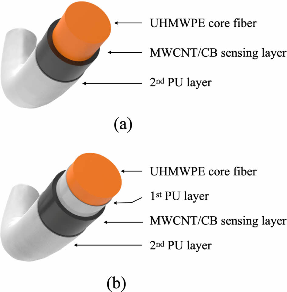 Fig. 1 Schematics of fiber sensor; (a) Single PU structure, (b) Double PU structure |