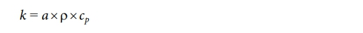 여기서 k는 열전도도, α는 열확산율, ρ는 밀도, cp는 비열이다.