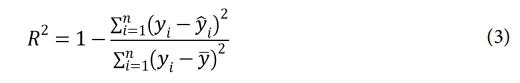 여기서, yi는 i번째 응답 값, ŷi는 i번째 피팅된 응답 값, y̅는 응답 값의 평균을 나타낸다 [25].
