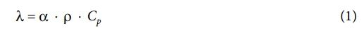 스티칭된 Pitch계 탄소섬유가 두께방향으로의 열전도도에 미치는 영향을 평가하기 위해, 제작된 열가소성 복합재의 밀도, 비열, 열확산도를 측정한 후, 이를 바탕으로 열전도도를 계산하였다. 열전도도는 식 (1)과 같이 정의된다.