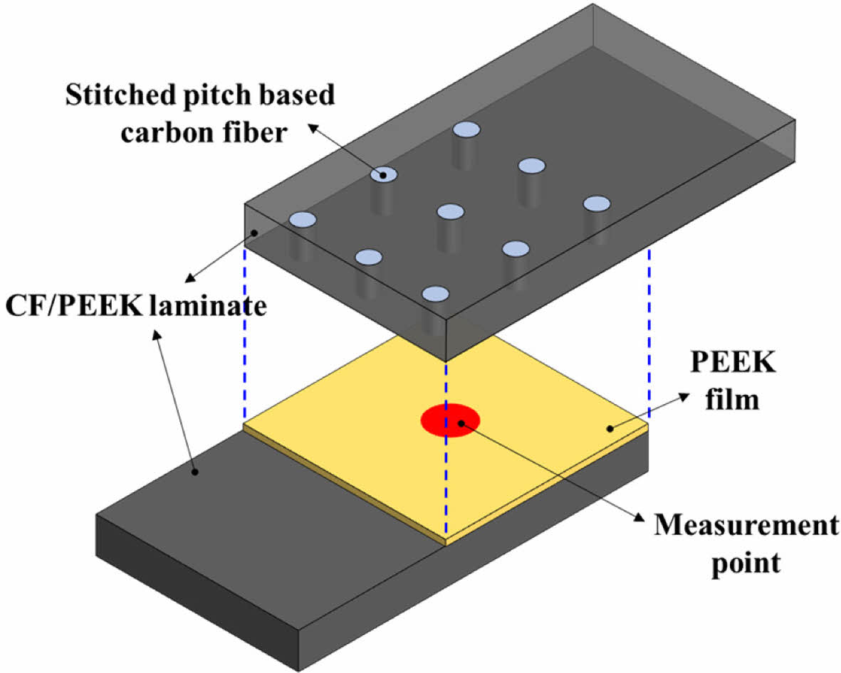 스티칭 공정은 적층 복합재의 낮은 층간 강도를 보완하기 위해 개발된 기술 중 하나로, 탄소섬유를 층간 방향으로 삽입하여 복합재의 층간 분리를 방지하고 충격 저항성을 높일 수 있다[30]. 본 연구에서는 스티칭에 사용되는 섬유를 열전도도가 매우 높은 Pitch계 탄소섬유를 사용하여 열전도 용접의 한계 및 성능을 극대화하였다.
