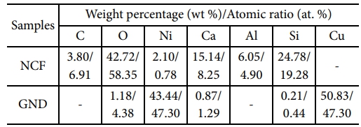 Fig. 2 Energy–dispersive spectroscopy (EDS) images of NCF and GND |