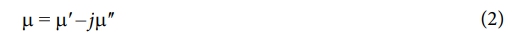 복소 유전율의 실수부(ε')는 전자기 에너지를 저장할 수 있는 능력을 나타내고 허수부(ε'')는 분극 과정에서의 위상 지연으로 인한 손실로 인해 에너지가 열로 소모되는 정도를 나타낸다. 투자율 역시 복소수 형태인 복소 투자율로 식(2)과 같이 정의되며 자기장에 대한 매질의 반응을 나타낸다.