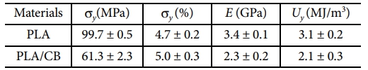 Table 5 Flexural yield properties and energy absorption of PLA and PLA/CB composites obtained from three-point bending tests |