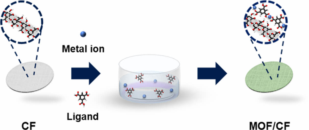 Fig. 1 Schematic of the in-situ growth of MOFs on CF |